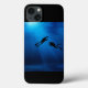 Cool scuba diving themed iPad Air case in a scenic image printed on the cover that shows an underwater scene with two scuba divers in diving gear in the water with beautiful sunlight. A unique tablet cover designed for men, or anyone who likes the sport of scuba diving underwater.