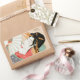 Cool japanese woodprint geisha with fan art rectangular sticker
