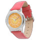 Customise Fun Orange fruit citrus graphic by PLdesign. With Orange gradient geometric mesh pattern and white clock face.