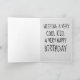 This card is great fun and good quality. I loved the humour inside and on the back. There is the opportunity to change the orientation of this card from landscape to portrait, which I did. It is relatively straightforward to amend the typeface to fit the new orientation. It was well packaged with no plastic. The printing on this card is excellent.