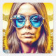 Cool ai art depicting an ethnic woman in blue sunglasses with a reflection of the road.