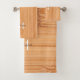 Cool light brown bamboo wood print Monogram Bath Towel Set