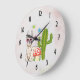 A clock Illustrated with a cute llama wearing heart-shaped sunglasses. Some stars, a mushroom and a green cactus complete the illustration. Whimsical and cute.
