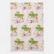 Patterned hand towel illustrated with a cute llama wearing heart-shaped sunglasses. Some stars, a mushroom and a green cactus complete the illustration. Whimsical and cute.