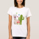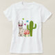 A t-shirt Illustrated with a cute llama wearing heart-shaped sunglasses. Some stars, a mushroom and a green cactus complete the illustration. Whimsical and cute.