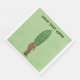 This paper napkin is light green with a cool man wearing a brown suit and red tie with a big green pickle for a head with a surprised looking face. Customise your text with the template.