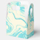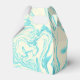 A stylish and sophisticated favour box with an elegant faux marble pattern with swirling colours in turquoise blue and cream colours.