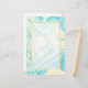 Stylish and sophisticated stationery paper with an elegant faux marble pattern with swirling colours in turquoise blue and cream colours. A semi-transparent frame with a gold border layered over top.