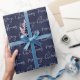 Cool Merry Christmas script font blue pattern Wrapping Paper