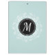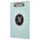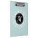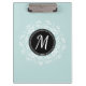 Cool Mint Blue Floral Wreath Custom Monogram Clipboard