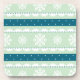 Christmas themed coasters with mint green/cyan/white snowflakes pattern.