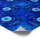 Digital background art of blue evil eye pattern made with photo collage technique. Cool, unique design.
