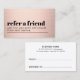 Modern fully customizable referral card template for beauty related professionals. Cool bold design with faux rose gold background and bold black fonts.