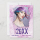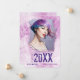 Cool, modern grunge style, double sided graduation announcement cards in shades of pink and purple. This unique, custom design features your personal photo, name, graduation year and high school, college or university name with your customisable announcement message on the back.