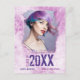 Cool, modern grunge style, photo graduation announcement postcards in shades of pink and purple. This unique, custom design features your personal photo, name, graduation year and high school, college or university name painted on a distressed style wall.