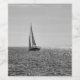 View of sailing boat near Istanbul. Sun light shines on sea surface. Cool, modern, black and white photography of summer concept.