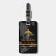 A nice bag-tag... elegant and modern design to help identify your baggage at the airport... custom name... templates for information about you... with the image of the map of world and yellow aeroplane
