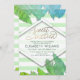 Cool modern tropical leaves stripes glittery invitation