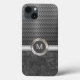 Men's business monogram smartphone case with cool silver metallic look background that has an industrial and rugged look, all digitally printed on the cover. Includes monogram emblem you can personalise and make your own by replacing the monogram name initial with yours. A case that's as unique as you are, designed for business professional or personal use.
