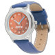 The blue band is the right color for a boys watch. My grandson loves lacrosse and the watch is easy to put on. He is ten years old. The lacrosse picture is very clear and I like the blue hands on the watch. It's good for teaching time.