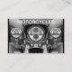 Motorcycle theme business cards with a cool closeup front view of a motorcycle in black and white in this smart two side design with your contact details displayed on the other side. Created for a motorcycle mechanic, motorcycle shop, or rentals.