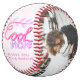 Pink Cool Mum Hand Lettering Mother Keepsake Photo Softball. Add 2 photos and names. Artistic hand lettering with leaves in pink and purple colours. Great gift for mother for Mother`s Day, birthday or Christmas.