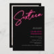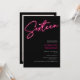 Cool neon pink script retro black photo Sweet 16 Invitation