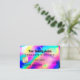 This girly and glamourous eyelash lashes extensions business card gift card is perfect for a stylish and trendy professional businesswoman. It features a faux printed neon unicorn holographic iridescent foil background. The typography is an elegant handwritten thick cursive script with a modern san-serif font to match. The colour scheme includes neon magenta, purple, yellow, teal green, neon blue, neon green, and neon pink. It's chic, pretty, unique, and luxurious; the perfect way to advertise your business and stylise your marketing and advertisement material for your customers.