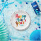 Add a splash of colour to your New Year’s celebration with paper plates featuring cheerful, hand-lettered brush script in bright shades of yellow, pink, and blue. Each plate proudly displays “Happy New Year” in playful, hand-drawn typography, spreading joy and excitement with every use. Around the border, a customisable text in clean, modern, easy-to-read type allows you to add your own message or greeting.