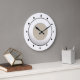 A wall clock with lots of details, but still not too busy thanks to most of it being white. The middle border has a certain shadow flare to it, making the clock face look 3D. It's just an illusion, though, the clock is physically flat.