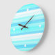 Cool Ocean Blue Aqua Turquoise Watercolor Stripes Large Clock