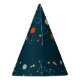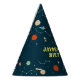This fun outer space themed birthday party hat design is mostly of navy blue colour scheme