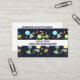 A business card with a cute and colourful pattern with all kinds of outer space themed elements. Images include astronauts floating around in their white space suits. Stars and planets and cool little rocket ships, spaceships, and satellites. Fun and crazy design.