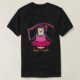 I give wanted to give this a 4 instead of a 5 because these Basic DARK T0shirts run unexpectedly SLIM or Narrow. Which is great if you do not have a potbelly, but I have a paunch. It isn't the shirt's fault that I've got a beer belly. The design and shirt itself is a quality cotton shirt. The color is more of a deep purple, but still a very pretty color. The Basic DARK T-shirts run a bit SLIMMER than the Basic Ts. The neck is a fraction narrower (or seems to be narrower) also. I'm a paunchy middle-aged woman and my neck is 12 inches (31cm) thick and the neckline fell about the same as in the photo of the man, and I had the desire to tug it a bit. So if you're a thick necked man or like loose shirts, be aware these are slimmer shirts. Once I get rid of my lockdown paunch it'll look great. The shirt washed well in cold water with no apparent bleeding. We don't have a dryer, so it hung dry. Did not shrink. Love the colors and the design. The design looks smaller on my shirt than it does on the model on-line. But still, it looks good on the shirt. The printing looks as it does on the model, just the size seems fractionally smaller. Washed garment in cold water, hung dry and design appeared unaffected.