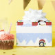 A cute design featuring a cool penguin with some Christmas packages on a cold, icy day in the arctic.