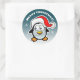 Use your own text to customise these round sticker featuring a funny penguin cartoon with Santa hat and create a truly unique Xmas favour.