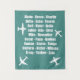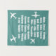 Cool teal blue wall tapestry with white aeroplanes, and the phonetic alphabet. Ideal for trainee pilots, those having flying lessons, for ground school and air cadets.