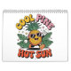 Stay organised and brighten every month with this Cool Pine Hot Sun calendar! Featuring a playful, retro-style pineapple wearing pink sunglasses, surrounded by bold tropical leaves, this cheerful design brings sunny, carefree vibes to your walls or desk all year long. Each page bursts with vibrant colour, making it easy to keep track of important dates, appointments, birthdays, and events in tropical style.