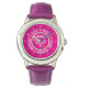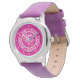 Eat, sleep, play tennis, repeat. In pink and white. Cool slogan on your Watch . White and pink circles with 2 white crossed rackets, yellow tennis balls and customisable name [text] .Great as Christmas stocking stuffer.