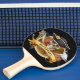 Overall, it's a nice product but for what you pay the quality isn't very good. The way it's glued together, as you can see in the pictures, is messy, the glue is visible and shiny, there's some ink staining that looks like black fluff but isn't, it won't come off. On the paddle's black surface there are also little white marks here and there. It's not too easy to show in the pictures because of the flash but I tried to showcase the little white blemishes that ruin a smooth black surface. This was meant to be a gift and it just looks sloppily put together unfortunately. A few imperfections that mar what could have been really great. The printing was neat.