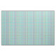 This fabric has an Art Deco design of a plaid made of two shades of turquoise, two shades of purple, and two shades of green.
