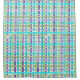 This shower curtain has an Art Deco design of a plaid made of two shades of turquoise, two shades of purple, and two shades of green.