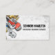 A visually striking business card featuring a cool illustration of plumbing tools, perfect for plumbers, contractors, and handymen who want a memorable and professional look.