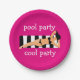 Coolest pool or beach party plates with text you can customise online along with ability to customise the pink background colour. Designed for a social gathering at home,  girls night out,  or birthday party.