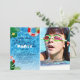 Is your child having a Pool Party? Loving this cool swimming pool birthday invitation with a tropical vibe. Featuring a photo of the birthday child, clear blue water, inflatables, tropical leaves, a yellow flower and a trendy birthday template that can easily be personalised.