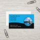 Cool business cards for a swimming pool service created with a graphic emblem of a pool being serviced and editable custom text you can personalise online.