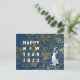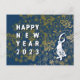 I've arranged a cool rabbit and abstract flowers as an artistic New Year's card. This is a blue-based background version.