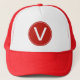 cool red and white monogram initial hat. trucker hat