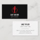 Cool modern business cards for guitar instructors, music teachers, guitar lessons, musicians or guitar players feature an electric guitar headstock in red on a black background, with two lines of custom text in white lettering. Customize the back with your full contact details, displayed beneath a smaller matching headstock illustration. Whether your specialty is classical, acoustic, electric, or bass, these modern and professional business cards are a perfect way to gain clients and brand your business!