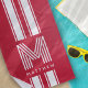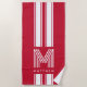 Cool Red White Racer Stripe Monogram Beach Towel